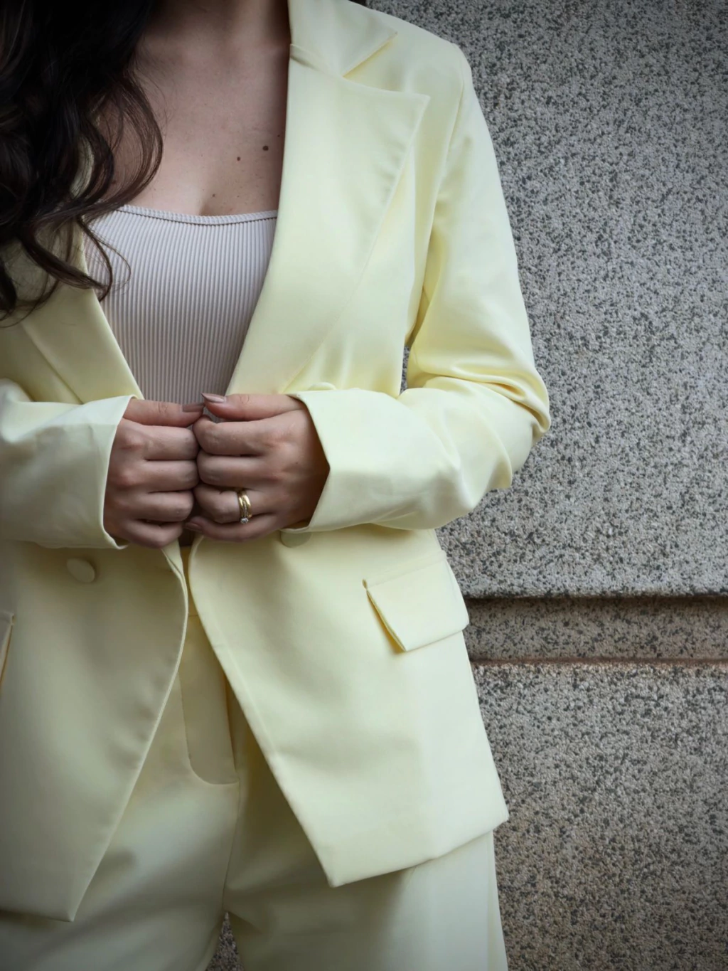 O Blazer de Alfaiataria com Botões é a peça que traduz sofisticação e poder em qualquer produção. Confeccionado em tecido estruturado e de caimento impecável, valoriza a silhueta com corte preciso e acabamento refinado. Os botões frontais adicionam um toque de elegância e atemporalidade, reforçando o caráter clássico da peça.